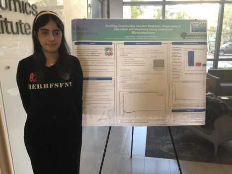 During the poster session, Asila presented her research findings, sharing her work with a wider audience, receiving feedback from peers and other research staff. Asila’s research focused on understanding the metabolic activity of C. necator through isothermal microcalorimetry, revealing unique metabolic signatures during starvation and recovery phases. This experience not only strengthened her experimental design and data analysis skills but also fueled her passion for microbial systems biology, aligning seamlessly with the interdisciplinary approach of ENIGMA. Asila aspires to continue her research in microbiology and bioengineering, eager to explore diverse fields and determine her future career path.